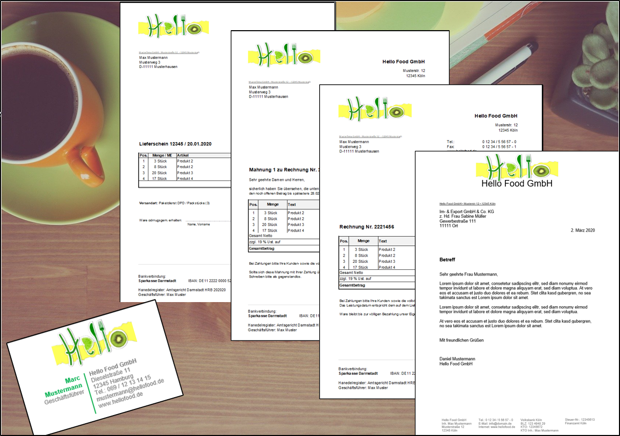 Unser attraktives Briefvorlagen-, Rechnungs-, Mahnungs-, Lieferschein-, oder Visitenkartendesign, hinterlässt bei Ihrem Kunden einen professionellen Eindruck.