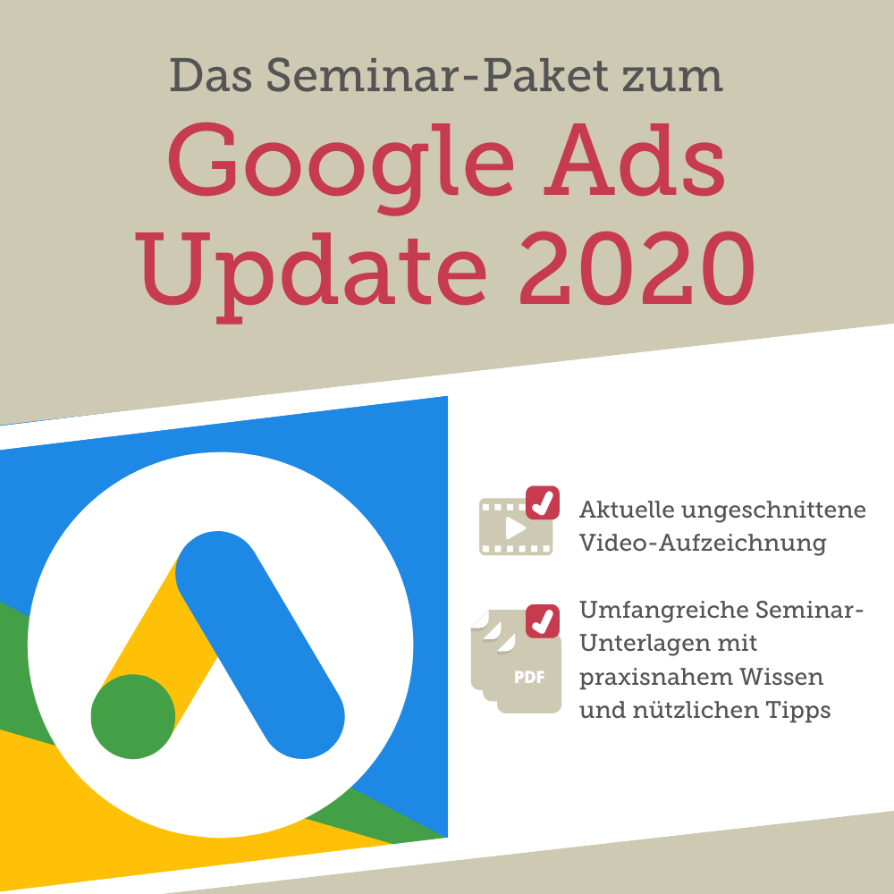 Das Seminar-Paket zum Google Ads-Update 2020 richtet sich sowohl an Mitarbeiter aus Agenturen als auch an solche, die Firmen-intern oder als Freelancer für den Google Ads-Kanal verantwortlich sind. Erfahren Sie die wichtigsten der zahlreichen Google Ads-Neuerungen aus der ersten Jahreshälfte 2020.