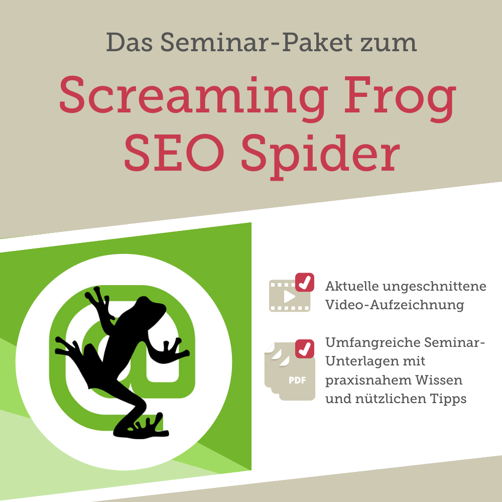 Das Seminar-Paket zum Screaming Frog SEO Spider führt Sie in nur wenigen Stunden in eines der wichtigsten SEO-Tools ein. Es hat sich in den letzten Jahren immer mehr zum „Goldstandard“ entwickelt, weil damit schnelle Analysen von Websites möglich sind. Gerade für Einsteiger oder gelegentliche Nutzer offenbart das Tool aber oft nicht seinen vollen Funktionsumfang, sodass man dann auch oft nur an der Oberfläche kratzt.