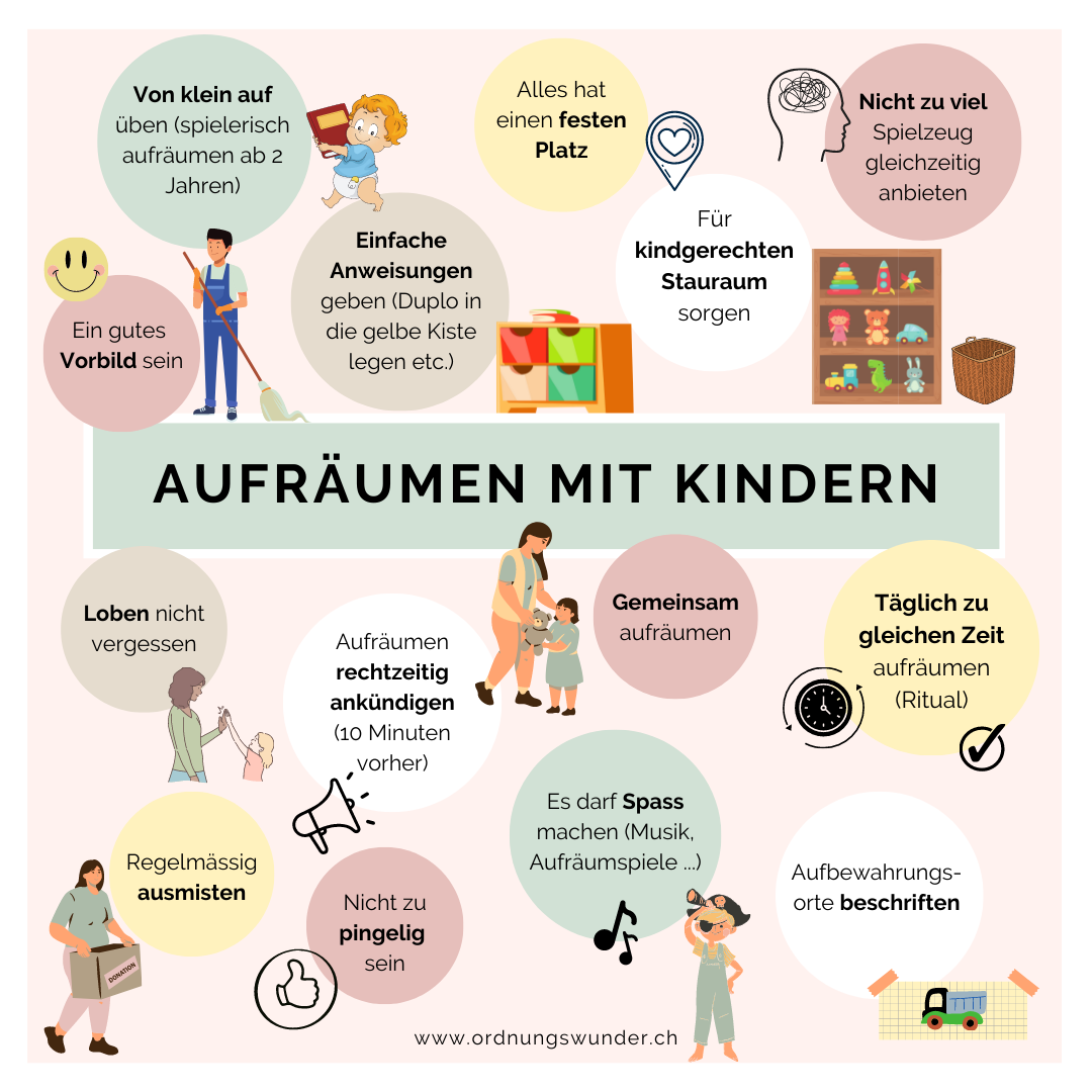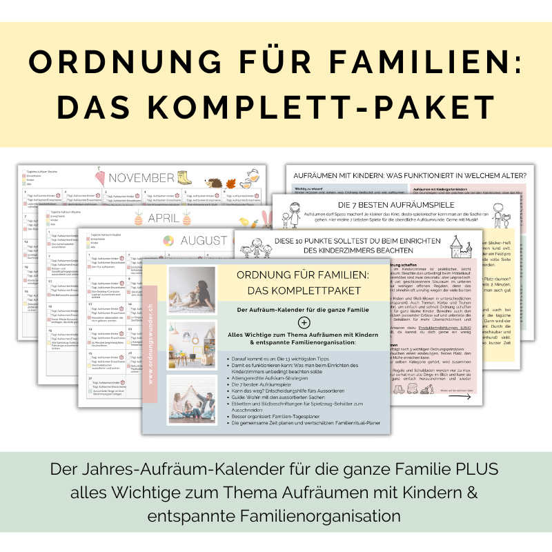 Möchtest du deinem Kind das Aufräumen von klein auf spielerisch und auf positive Art und Weise beibringen und die besten Voraussetzungen dafür schaffen, dass es weiss, wie Ordnung funktioniert und bald eigenständig ohne lange Diskussionen sein Zimmer aufräumt?