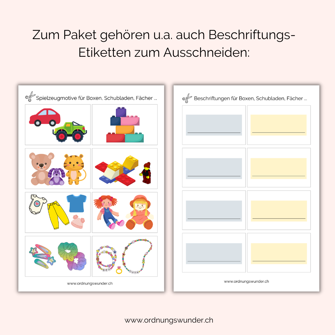 - Etiketten und Bildbeschriftungen für Spielzeug-Behälter zum Ausschneiden