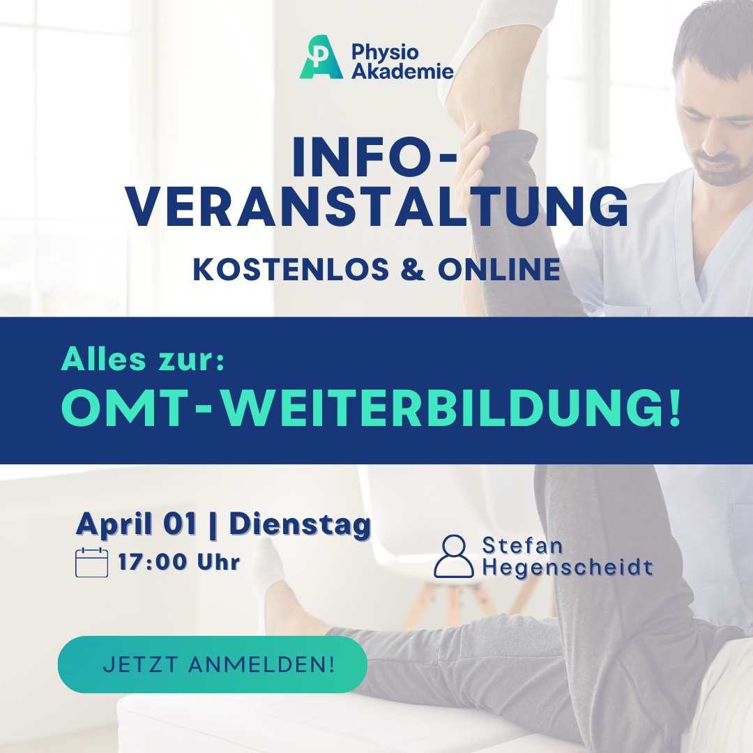 Möchten Sie mehr über die Orthopädische Manuelle Physiotherapie (OMPT) erfahren? In dieser kostenlosen Live-Infoveranstaltung erkläre ich Ihnen, wie die OMT-Weiterbildung aufgebaut ist, welche Inhalte vermittelt werden und welche Vorteile sie Ihnen bringt.