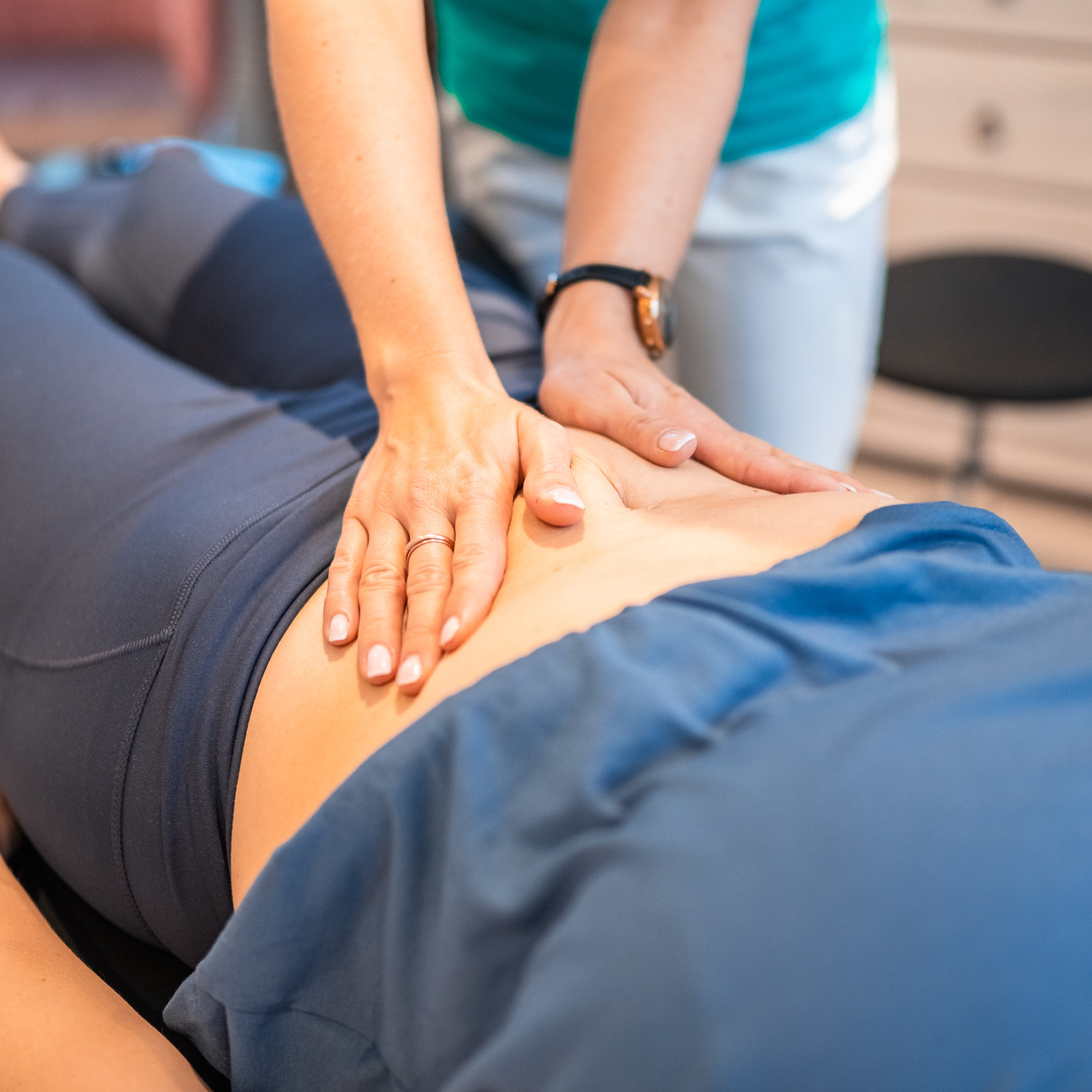 - Wahrnehmung und sanfte Aktivierung von Beckenboden, tiefer Bauchmuskel, Rücken und Zwerchfell