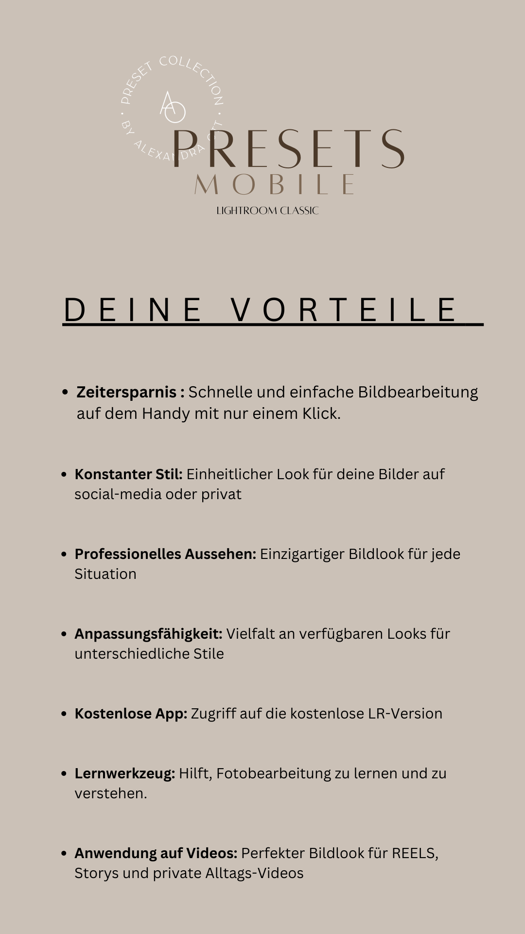 Mit diesen einzigartigen mobilen PRESETS verwandelst du mit nur einem Klick "gewöhnliche" Bilder in echte Hingucker.