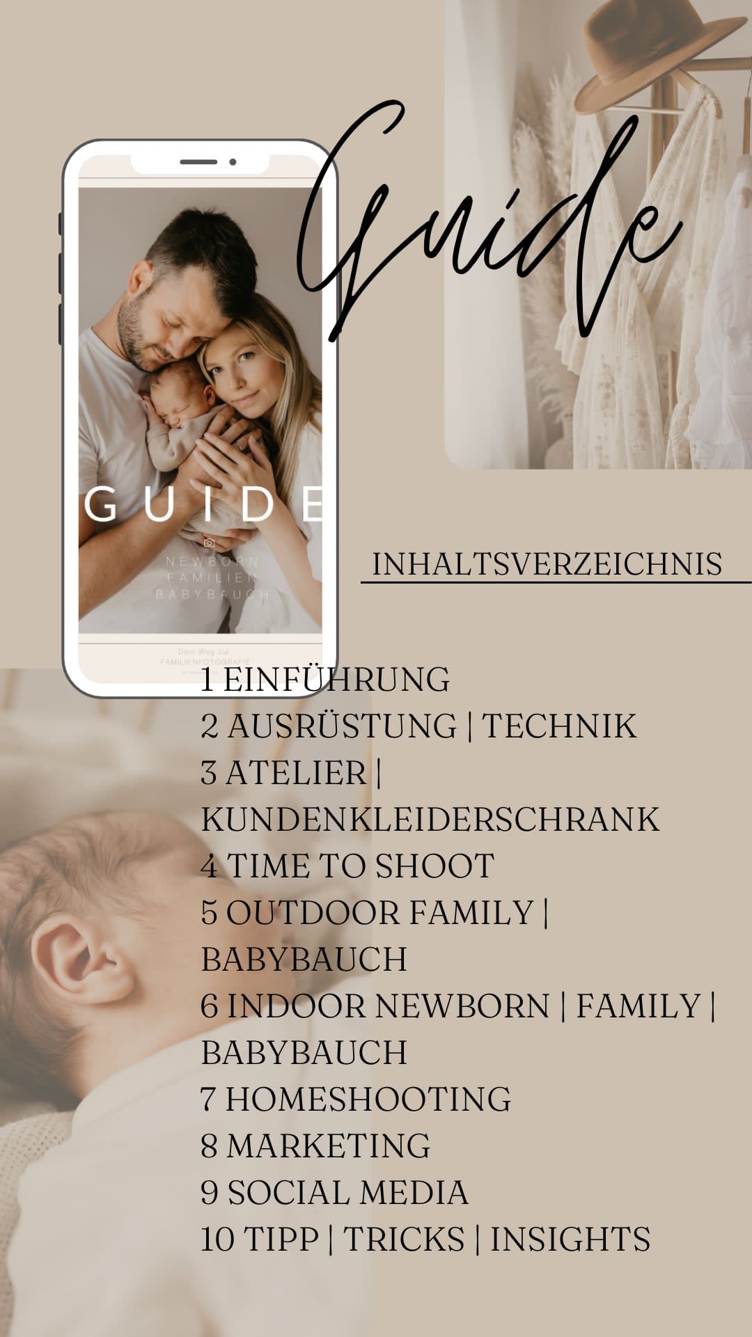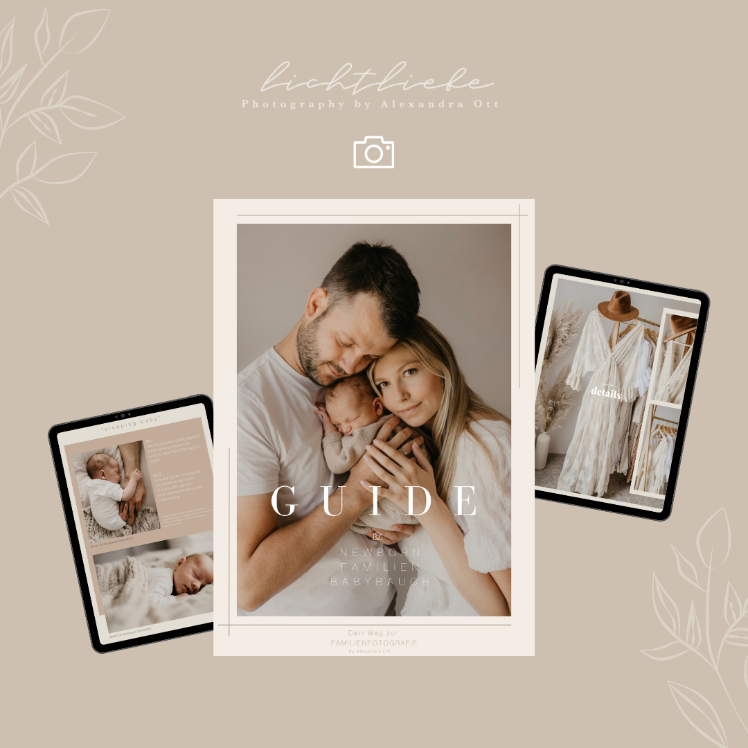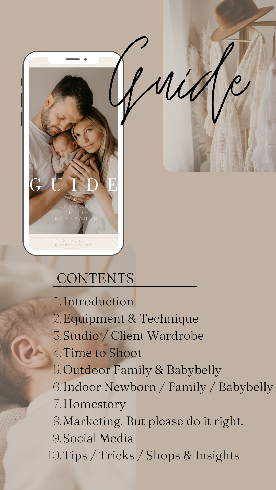 140 Seiten Guide im PDF Format rund um die Fotografie von Familien-Newborn-und Babybauch.