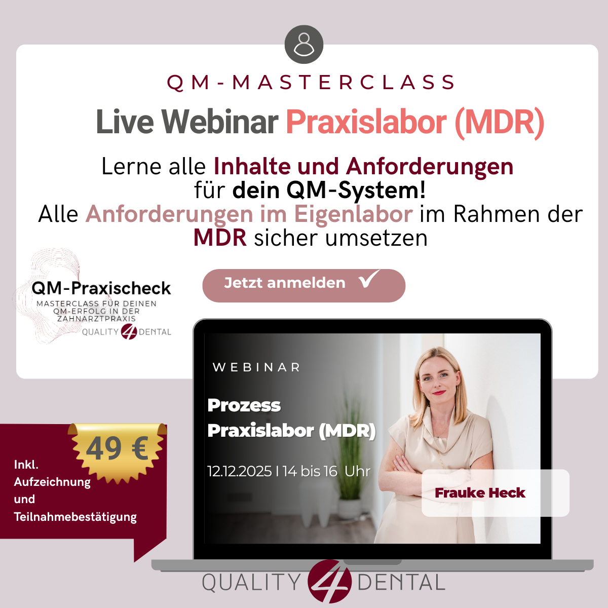 ✅ Zugang zum Livewebinar „Labor & MDR im QM – Sicherheit & Struktur in der Praxis“