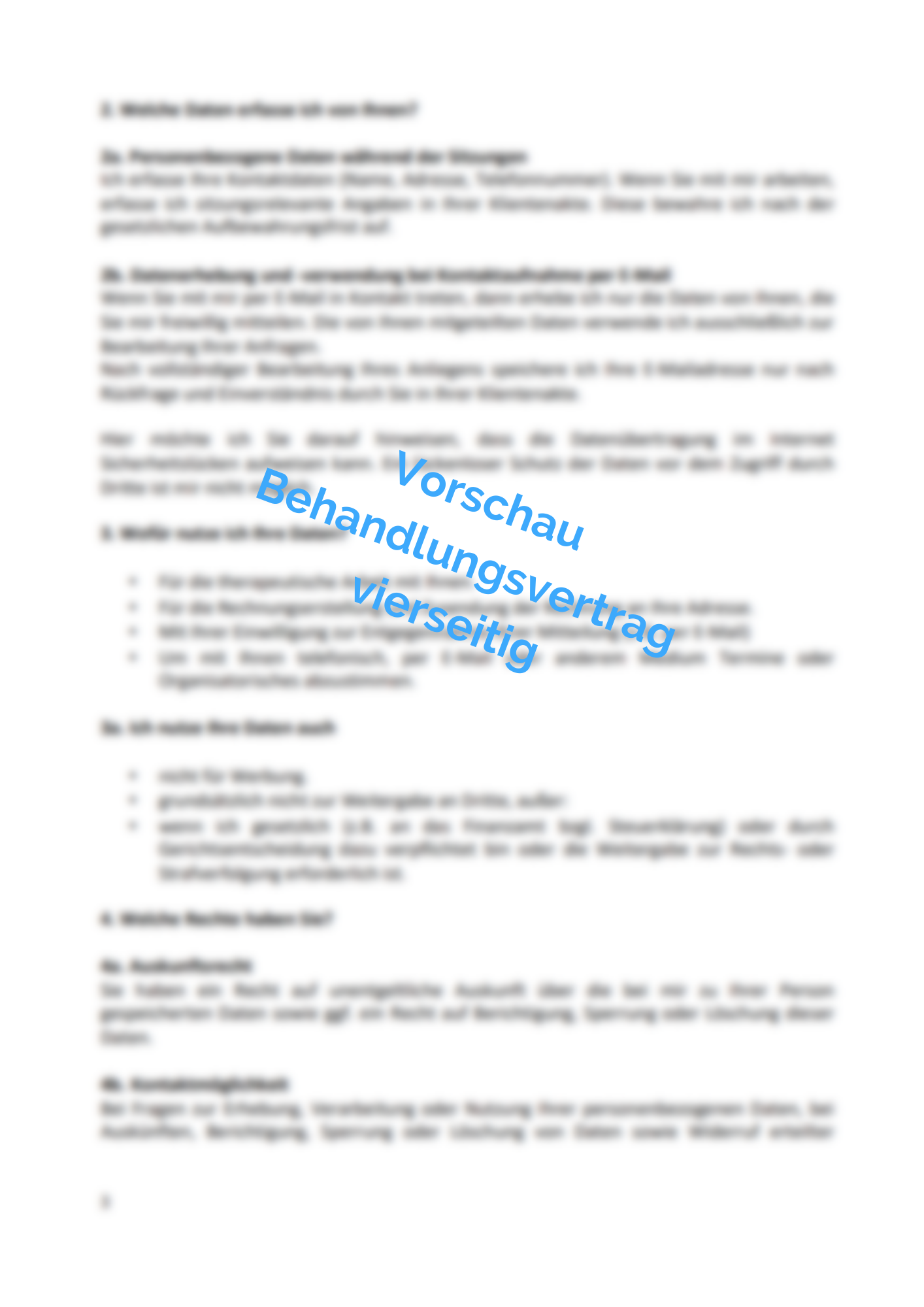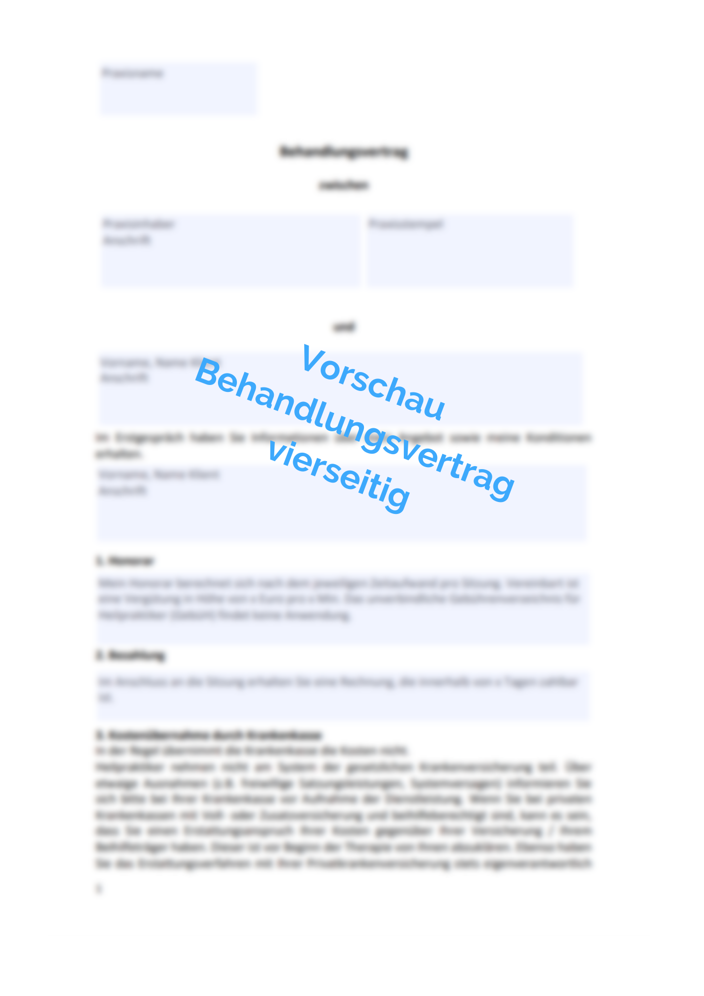 Mit dieser Vorlage haben Sie einen Behandlungsvertrag, der folgende Punkte umfasst: