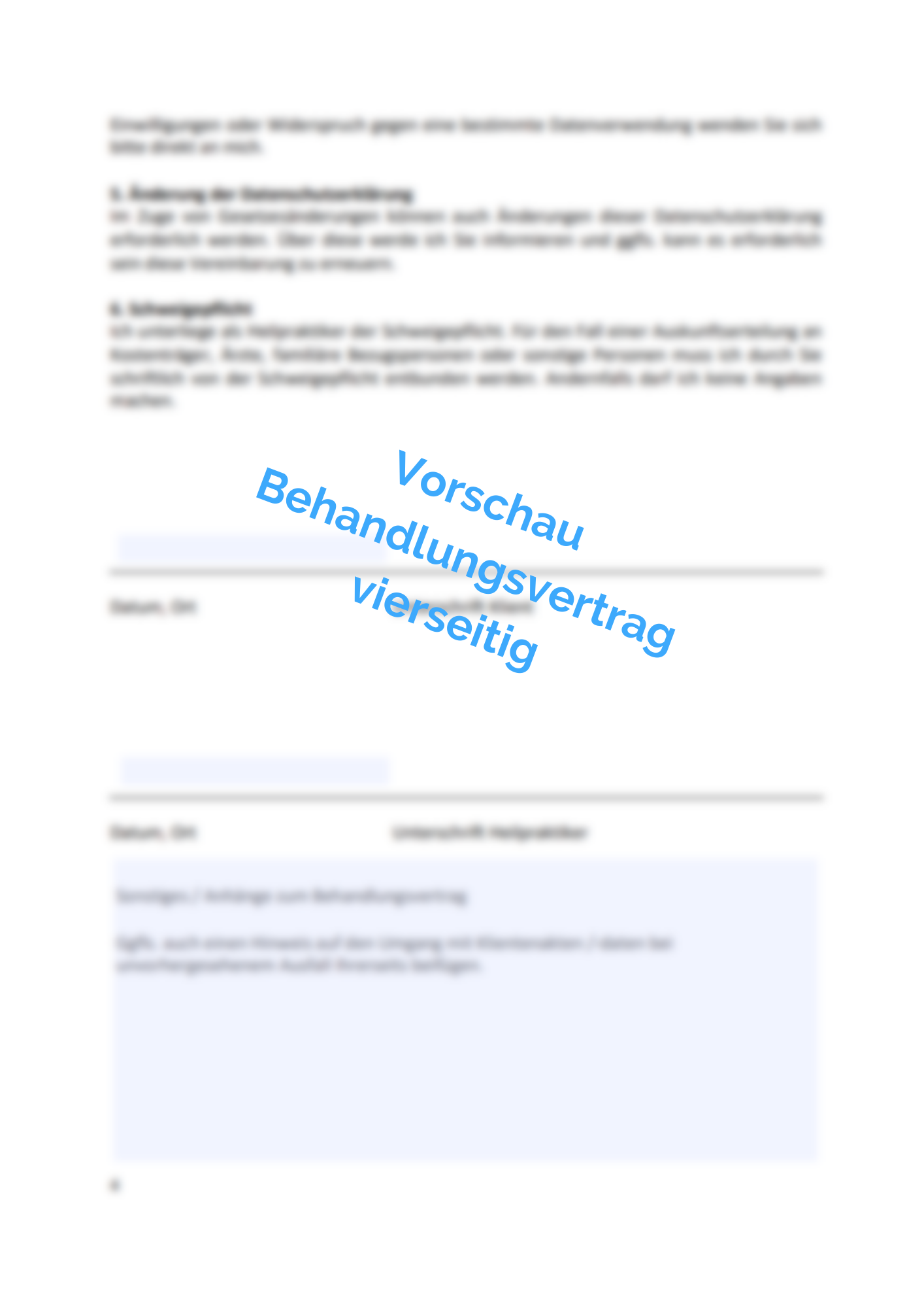 Anschließend haben Sie einen auf Ihre Praxis abgestimmten Behandlungsvertrag, der von Ihren Klienten und Ihnen unterschrieben werden kann.