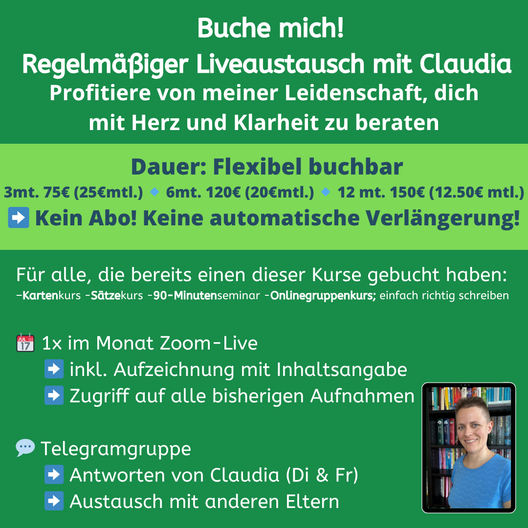 Diese Begleitung ist für Eltern gedacht, die bereits mit den Strategien arbeiten – und sich mehr Sicherheit, Regelmäßigkeit und Austausch im Alltag wünschen.