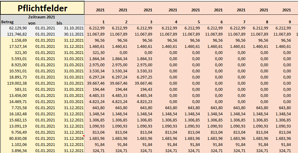 Haben Sie über zehn Jahre laufende Disagio oder mehrjährige Supportverträge, kein Problem. Dieses Tool lässt sich beliebig weit in der Zukunft verarbeiten. Sie können auch Ihre bereits laufenden Abgrenzungen nachpflegen. In einer einzigen Tabelle behalten Sie die Übersicht in der operativen vier Jahres-Vorschau.