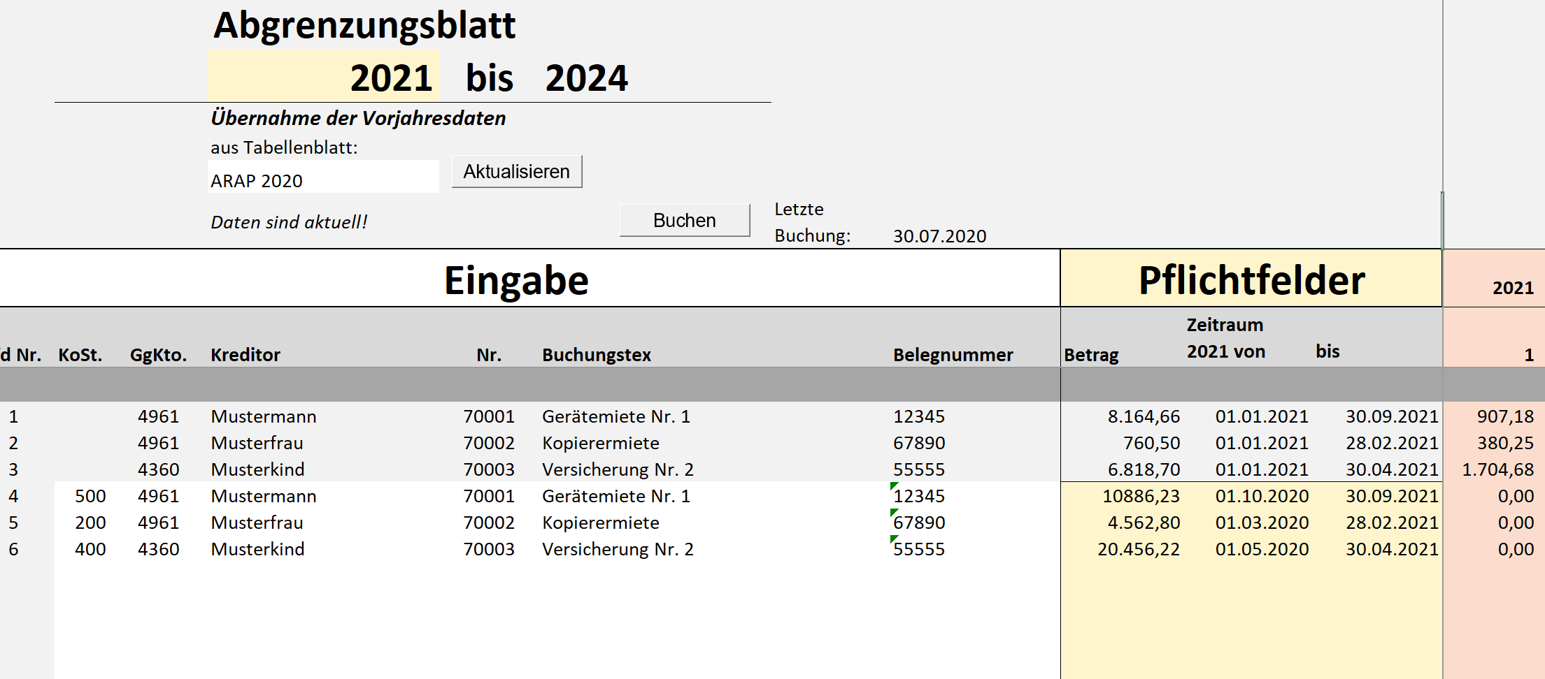 ARAP Excel-Tool aktiv. Rechnungsabgrenzung