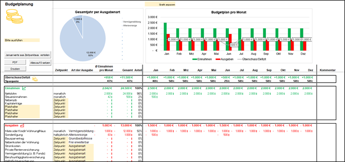 Das Excel-Tool: Budgetplan Privat mit Makros wurde entwickelt für die Budgetplanung sowie die einfache Eingabe durch automatisierte Verteilung.