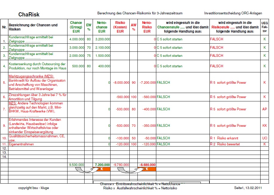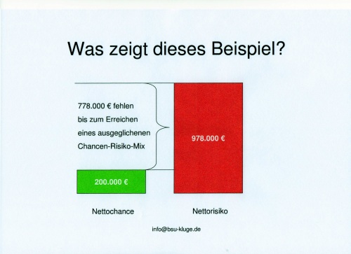 - Erst dann wird das Nettorisiko aller identifizierten Einzelrisiken in einem Block zusammengefasst und mit dem sich aus den Gelegenheiten ergebenen Chancen verglichen.