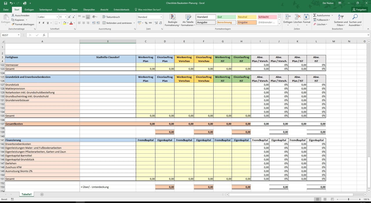 Excel-Vorlage zur Planung der Baukosten Ihres Hausbaus.