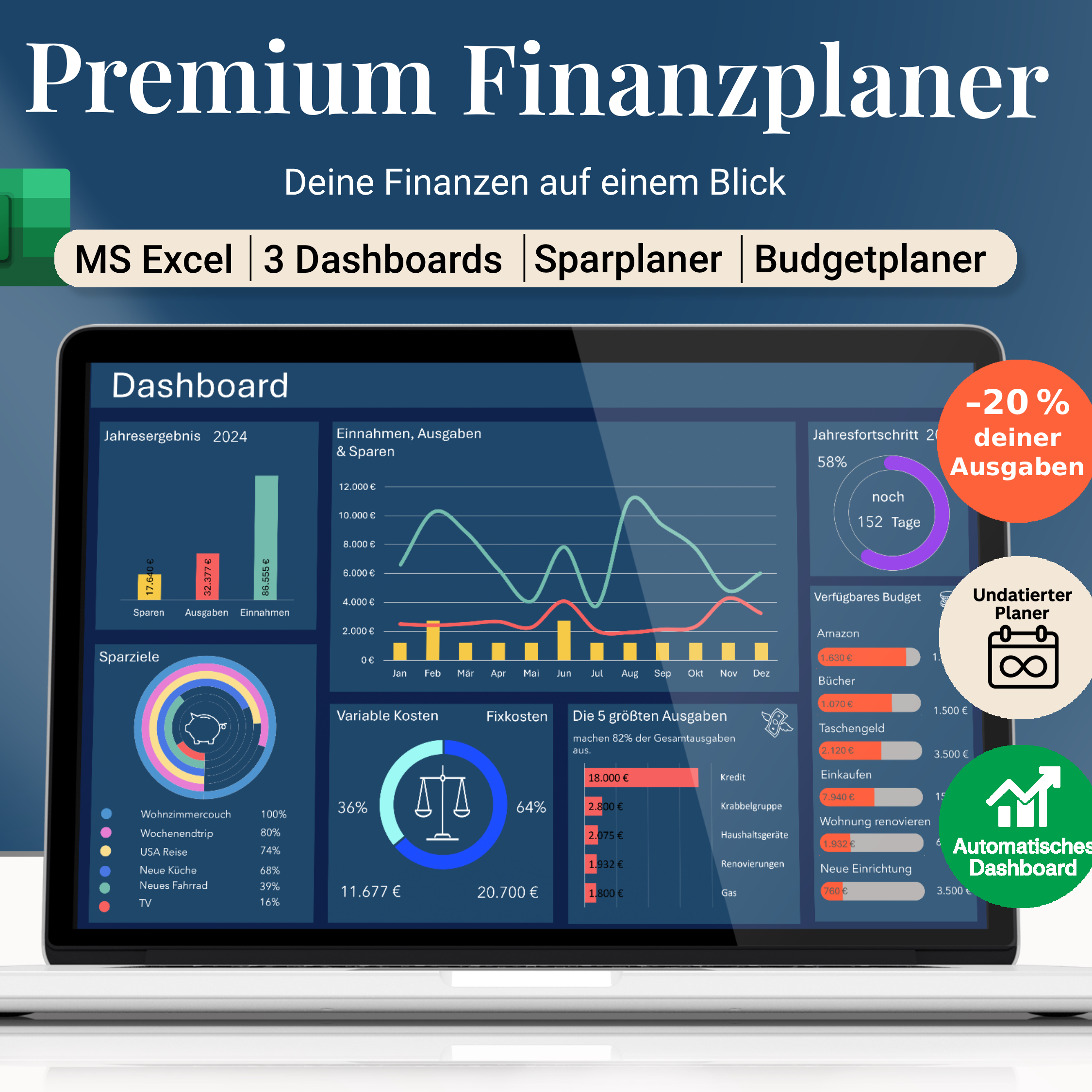 Behalte den Überblick über deine privaten Einnahmen, Ausgaben und Ersparnisse – einfach, strukturiert und effizient! Unser privater Finanzplaner ist mehr als nur eine Excel-Tabelle. Er ist dein persönliches Finanztool, mit dem du: