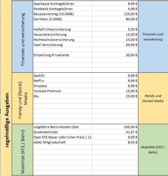 - Ausgaben (regelm.): Für die Eintragung der regelmäßigen Ausgaben