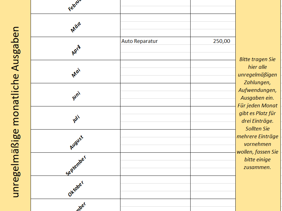 - Ausgaben (Sonder): Für die Eintragung der unregelmäßigen Ausgaben