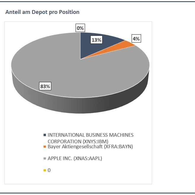 Mit der Excel-Depot Übersicht können alle wichtigen Infos des Depots, wie z. B. die Zusammensetzung der einzelnen Positionen in übersichtlichen Grafiken angeschaut werden. Weiterhin können hier auch einzelne Aktien ausgewählt und näher analysiert werden.