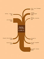 Mit diesem Tool kann ein Sankey-Diagramm mit insgesamt 25 ein- und ausgehenden Zweigen erzeugt werden. Dazu müssen lediglich die erforderlichen Daten in einer Tabelle erfasst werden. Mit einigen Formatierungen direkt in der Eingabetabelle und wenigen Mausklicks im Konfigurationsbereich kann das Aussehen des Diagramms gesteuert werden.