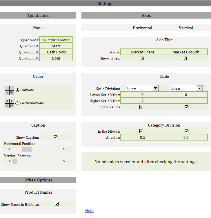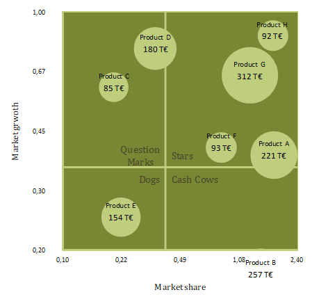 • Scaling of the axes (default: relative market share - from 0 to 1, market growth - from 0 to 2)