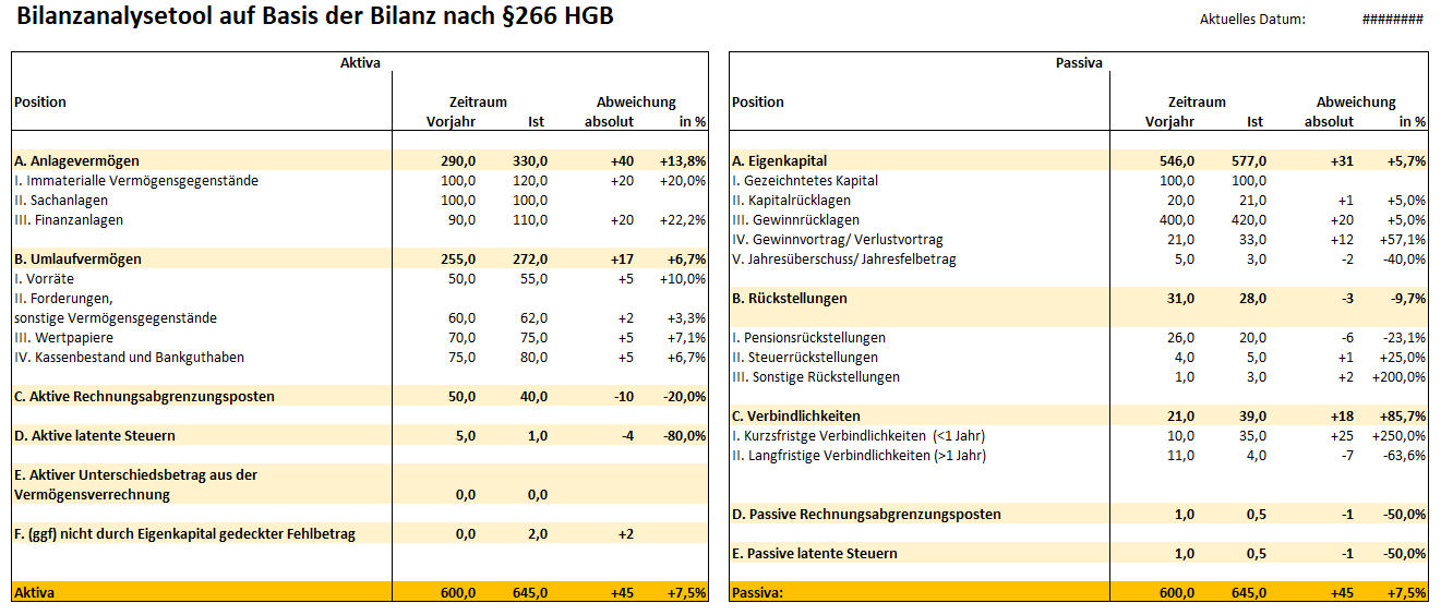 - Jahresvergleich der einzelnen Bilanzpositionen
