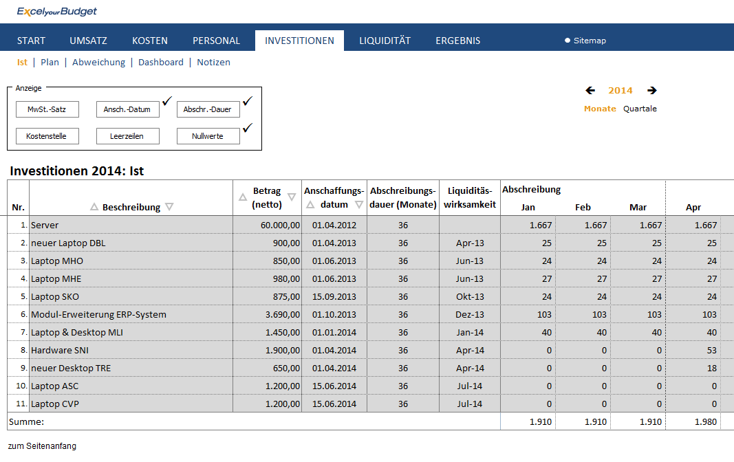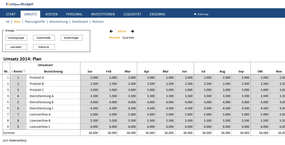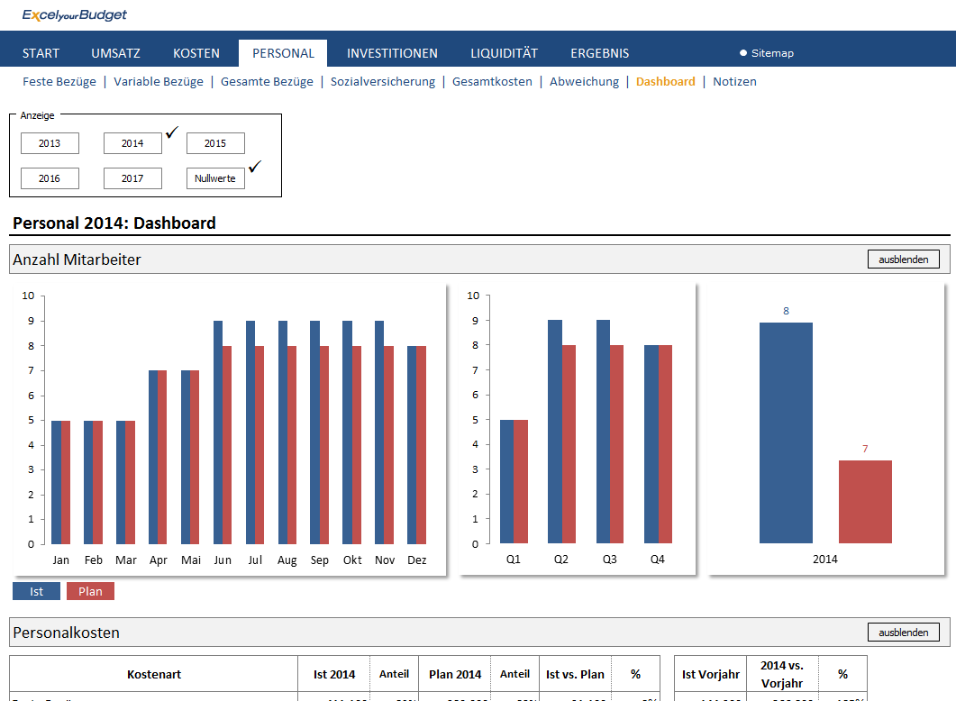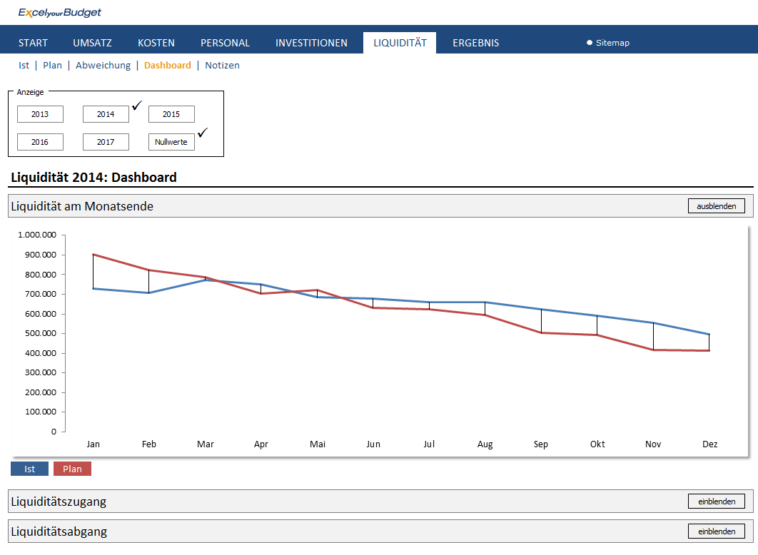 Excel Your Budget ist eine schlanke, leicht verständliche Lösung zum Planen, Budgetieren und Analysieren der Geschäftsentwicklung.