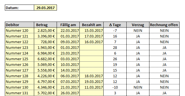 Mit dieser Excel Vorlage analysieren Sie die Debitoren nach Verzugstagen oder fälligen Betrag.