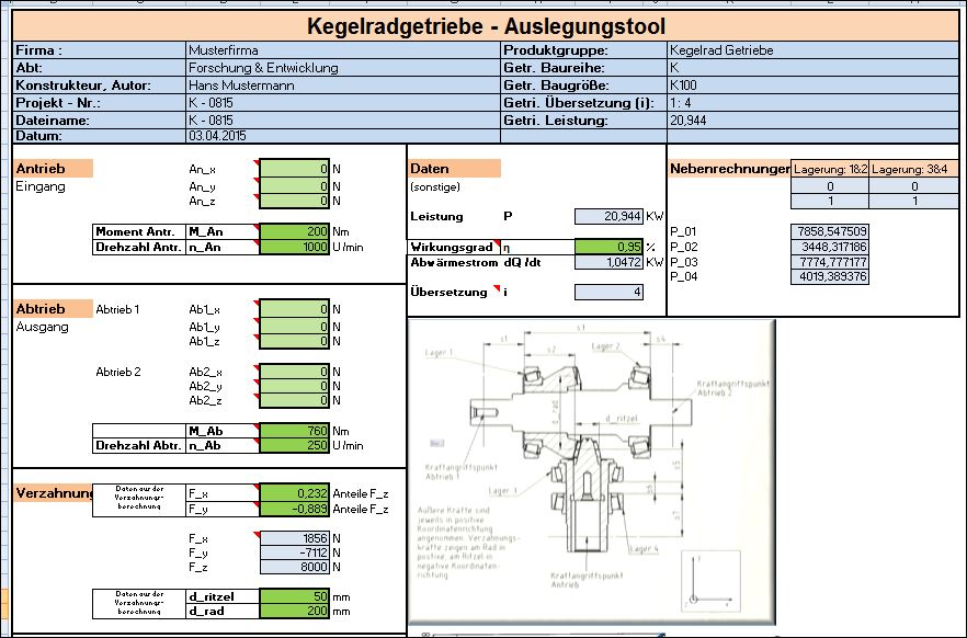 Dieses Tool bietet eine schnelle und effiziente Auslegung und Optimierung für ein Kegelradgetriebe. Es wurde speziell für die Konstruktion konzipiert und soll die Entwicklung unterstützen. Jedes Eingabe und Ergebnisfeld wird unter Kommentare erklärt bzw.Informiert Sie über gewisse Eigenschaften die zur Anwendung sehr