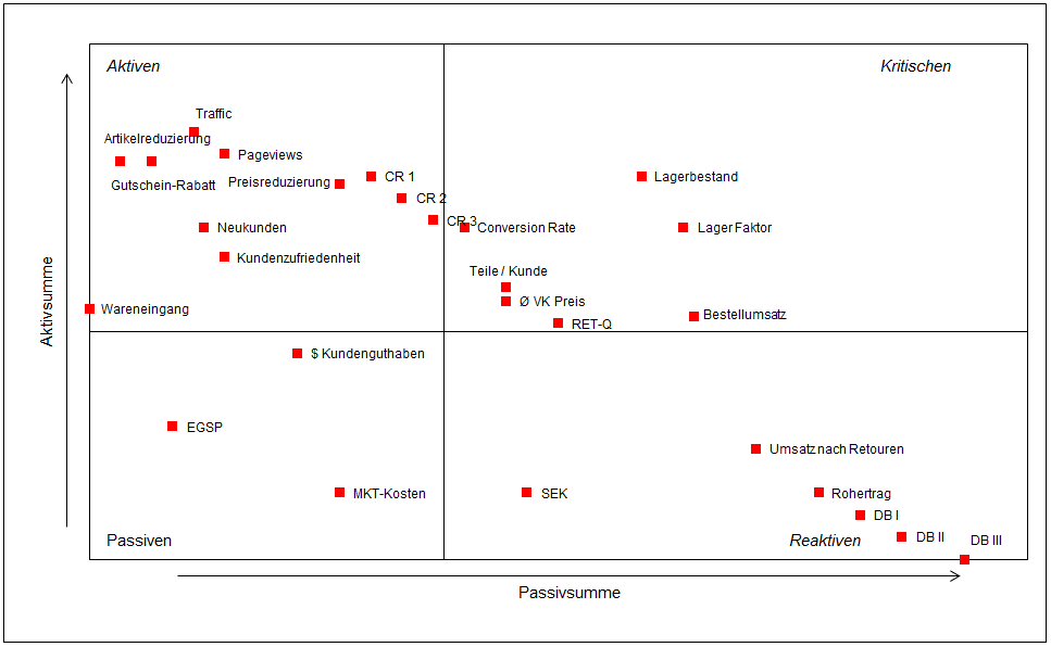 eingeteilt (eine Erklärung der Kategorien ist in der Datei enthalten). Somit haben Sie eine Entscheidungshilfe, welche Kennzahlen im Berichtswesen bzw. Report aufgenommen werden sollten bzw. welche Kennzahlen zur Steuerung wichtig sind. Eine Muster-Lösung anhand von E-Commerce Kennzahlen ist in der Datei enthalten.