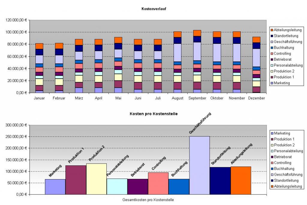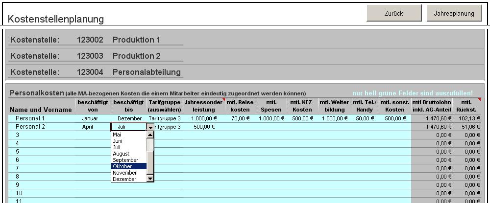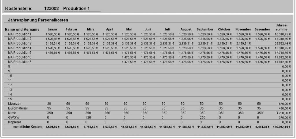 - Kostenstellenplanung auf Monats- und Jahresbasis pro Abteilung