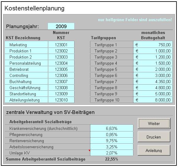 Dieses MS Excel-Tool ermöglicht eine branchenunabhängige monatliche und jährliche Kostenstellenplanung