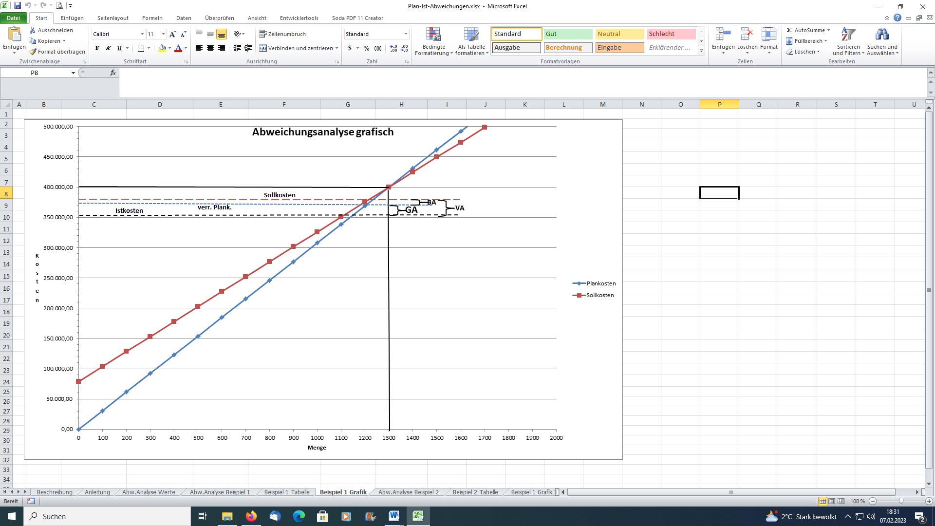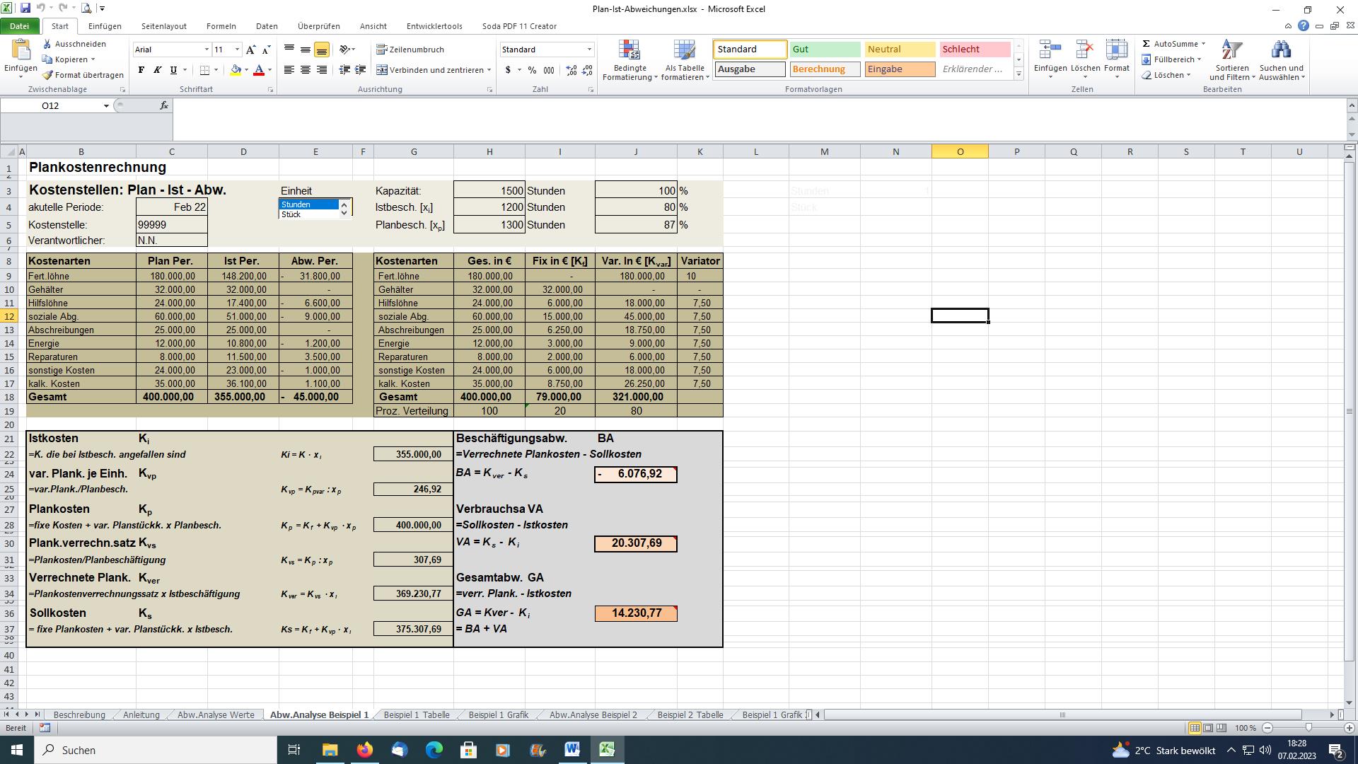 Nach Eingabe der Plankosten und Istkosten für eine Kostenstelle und Periode, sowie der Aufteilung der Kosten in variable und fixe Kosten, werden formelgestützt alle relevanten Größen (Sollkosten, verrechnete Plankosten etc.) ermittelt und eine Abweichungsanalyse (rechnerisch und grafisch) durchgeführt.
