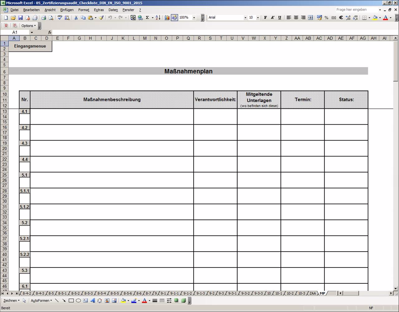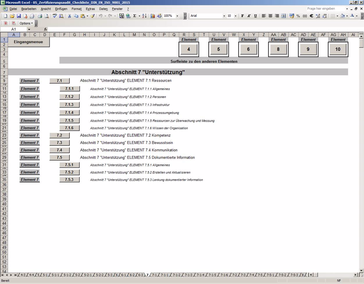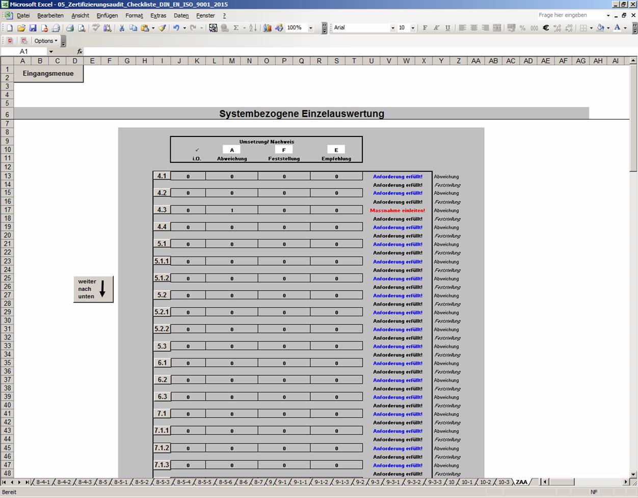 Eine Kombination aus der weltweit am häufigsten genutzten Norm ISO 9001, Auditchecklisten mit Einzelauswertung und Maßnahmenplan.