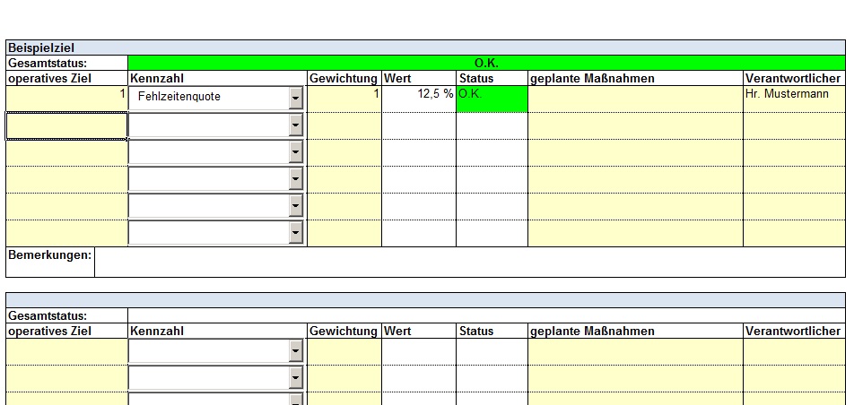 - Für jedes operative oder strategische Ziel können Maßnahmen und Verantwortliche benannt werden.