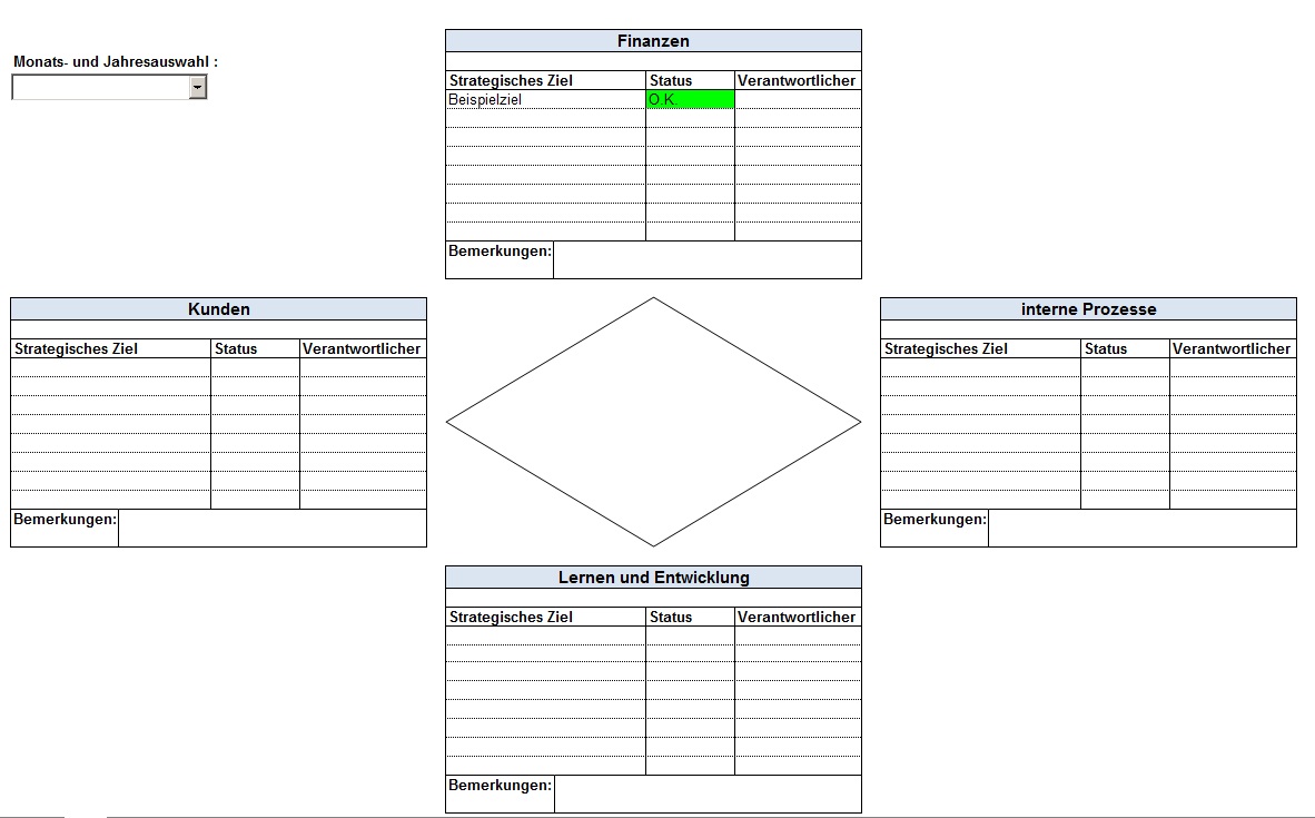 Dieses Tool ist eine auf MS Excel basierende Arbeitshilfe und kann daher auf ihre individuellen Bedürfnisse leicht angepasst werden. Konzipiert wurde es für kleine Unternehmen und Freiberufler. Ideal ist es auch für Studenten, die die Funktionsweise einer Balanced Scorecard erlernen wollen.