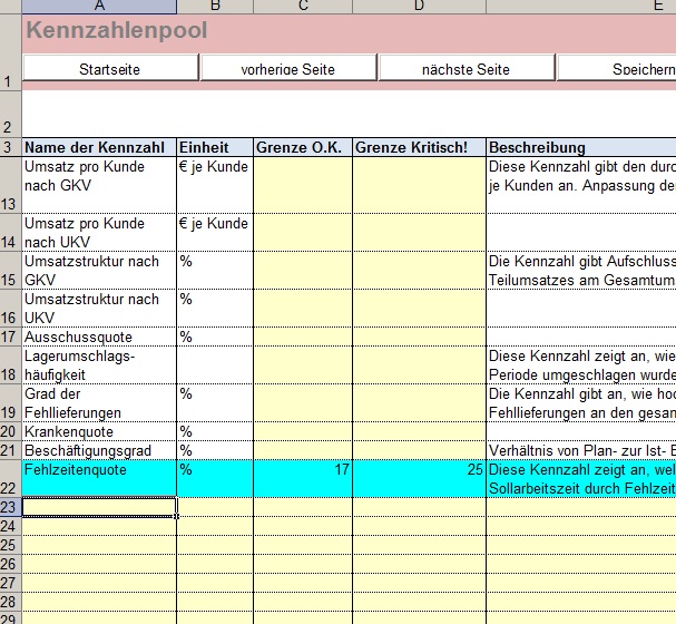 - Für Kennzahlen können Grenzbereiche vordefiniert werden. Der entsprechende Status wird automatisch berechnet.