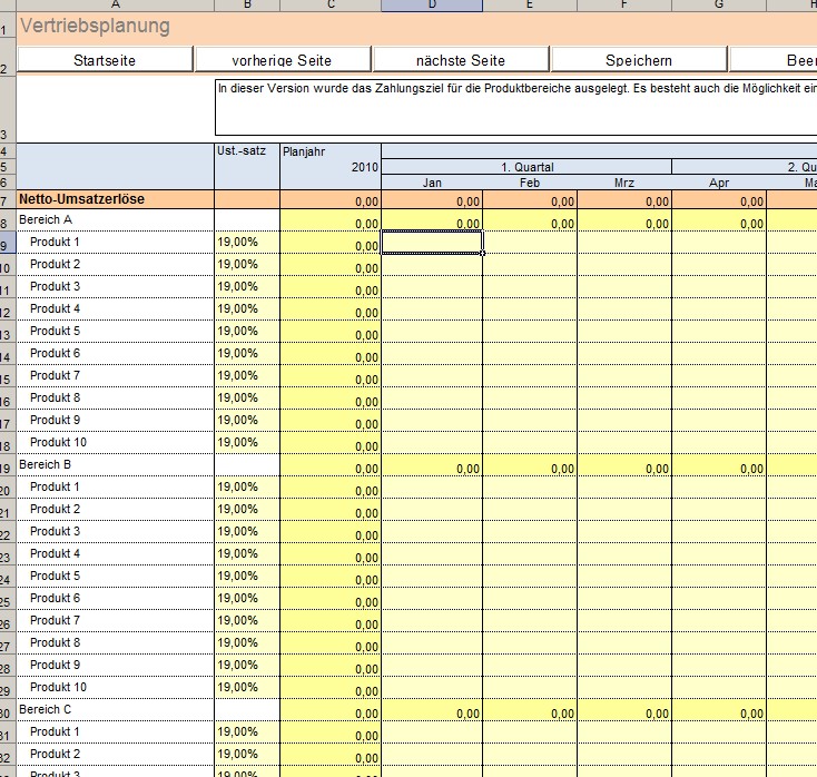 - Detailplanung für Umsatzerlöse