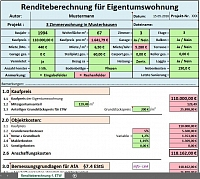 Hierbei handelt es sich um ein Excel-Programm mit dem die Rendite einer Wertanlage in Form einer Immobilie berechnet werden kann. Es ist auf seiner Art und Weise einzigartig aufgebaut.