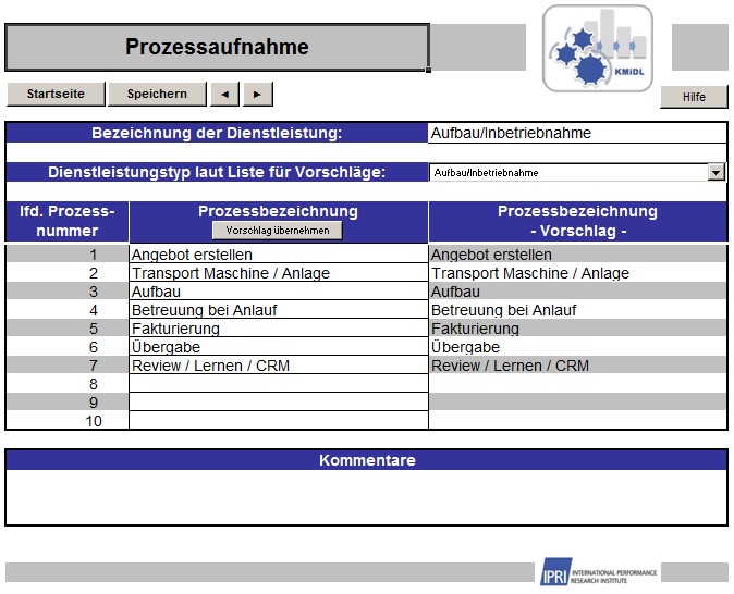 - Prozesskostenrechnung zur Erhebung der bislang angefallenen Kosten bzw. der prognostizierten Kosten der Dienstleistungserstellung