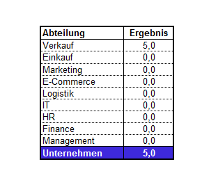 Mit diesem Excel Tool werden 9 Abteilungen inkl. der Geschäftsführung eines Unternehmens bewertet.