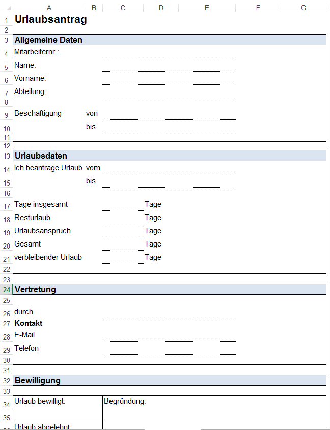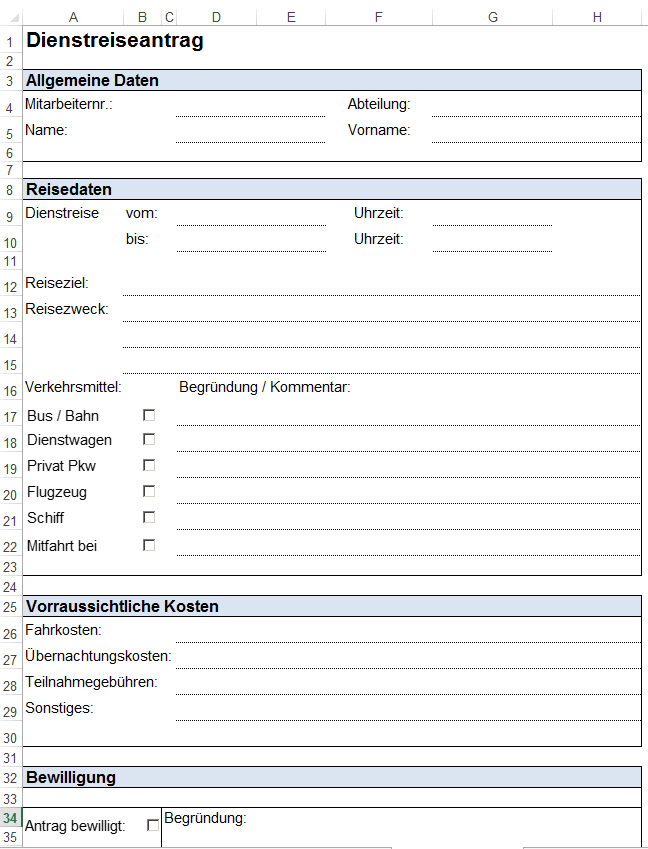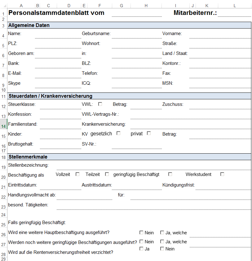 Diese auf MS Excel basierende Arbeitshilfe bietet Ihnen Muster-Formulare für die Verwaltung von Personalangelegenheiten. Es sind folgende Vorlagen enthalten: