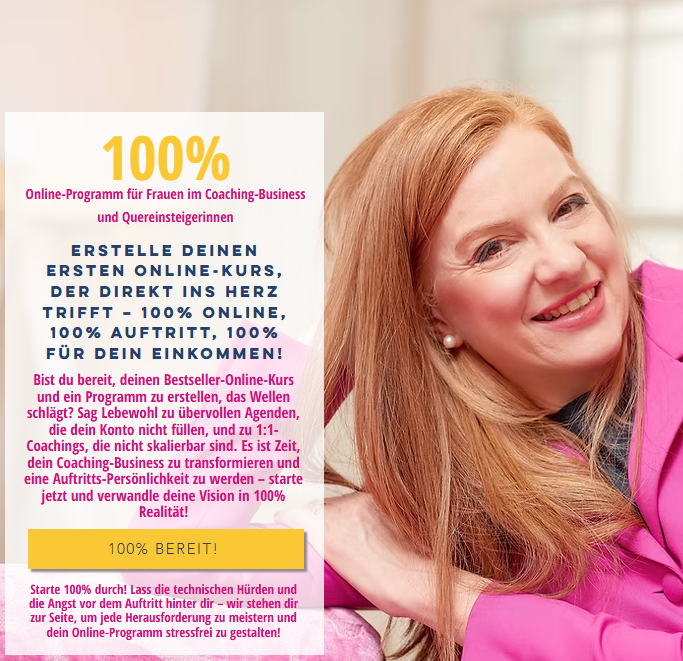 100% Das Online-Programm für Frauen im Coaching-Business und Quereinsteigerinnen
