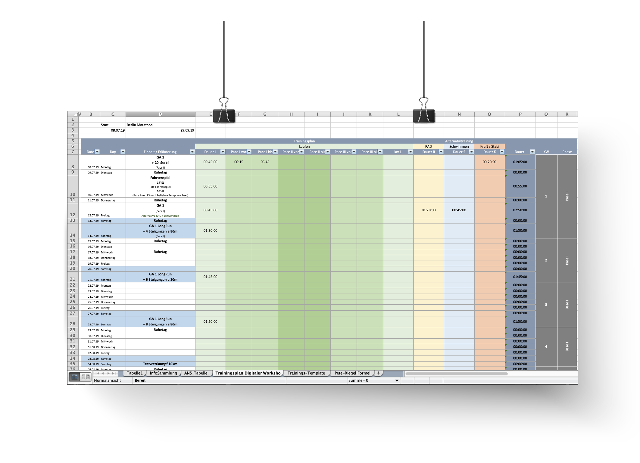 Deinen Trainingsplan erhältst du wöchentlich als Excel-Dokument mit allen Einheiten und einer Erklärung dazu, wie du z.B. bestimmte Einheiten tauschen kannst.