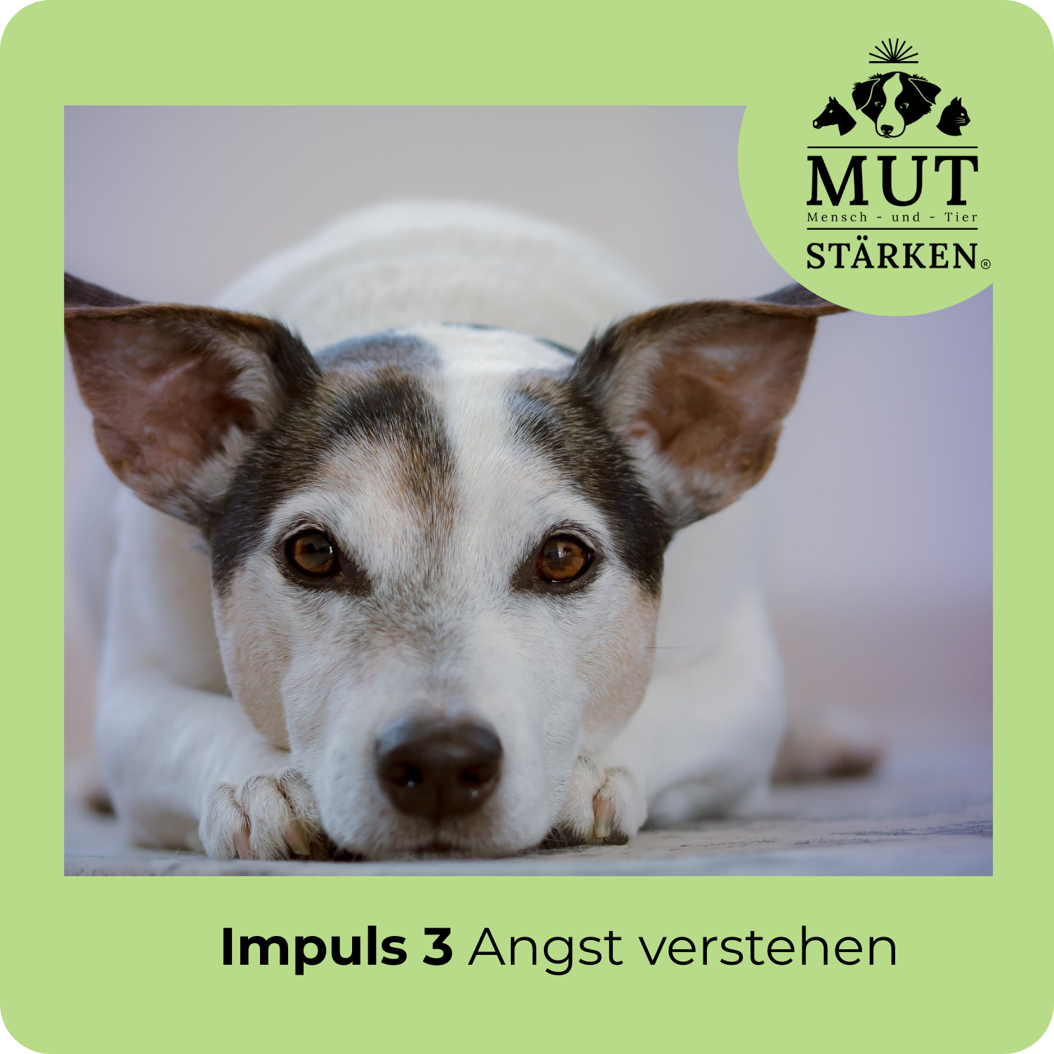 Impuls 3 vermittelt dir Wissen und ein tiefes Verständnis für die verschiedenen Formen der Angst bei Hunden und deren Auslöser. „Was triggert meinen Hund?“ Du bekommst erste Ideen und Übungen an die Hand, wie du deinen Hund präventiv unterstützen und ihn bei bereits bestehenden Ängsten begleiten und stärken kannst.