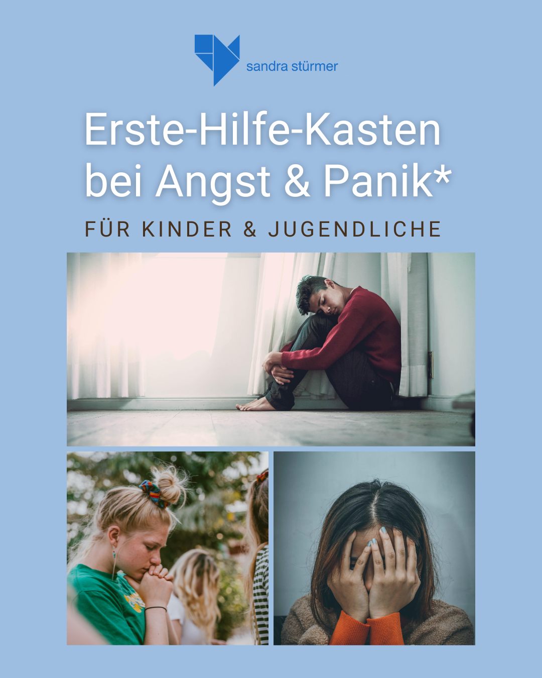 Aus meiner langjährigen Erfahrung als Heilpraktikerin für Psychotherapie, Coach und Beraterin für Kinder, Jugendliche und Eltern habe ich den Erste-Hilfe-Kasten bei akuter Angst* und Panik entwickelt, der dein Kind dabei unterstützen soll wie es seine Angst in Mut und Stärke verwandeln kann.