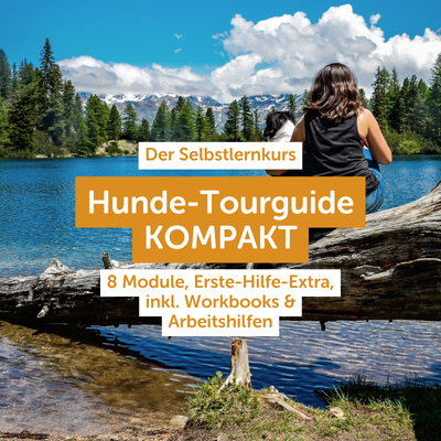 In unserem praxisorientierten Selbstlernkurs lernst du in 8 Modulen und dem Extramodul „Erste Hilfe am Hund“, wie du eigene Hunde-Freizeitaktivitäten professionell umsetzen kannst.