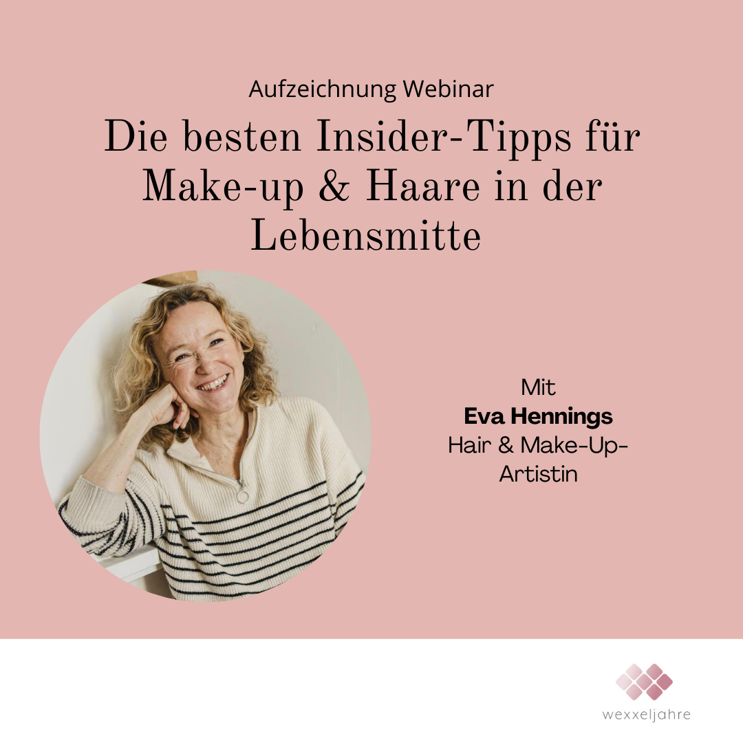 Unser Webinar „Die besten Insider-Tipps für Make-up & Haare in der Lebensmitte“ mit Eva Hennings fand am 19. Februar 2025 statt. Dauer 1.10 h
