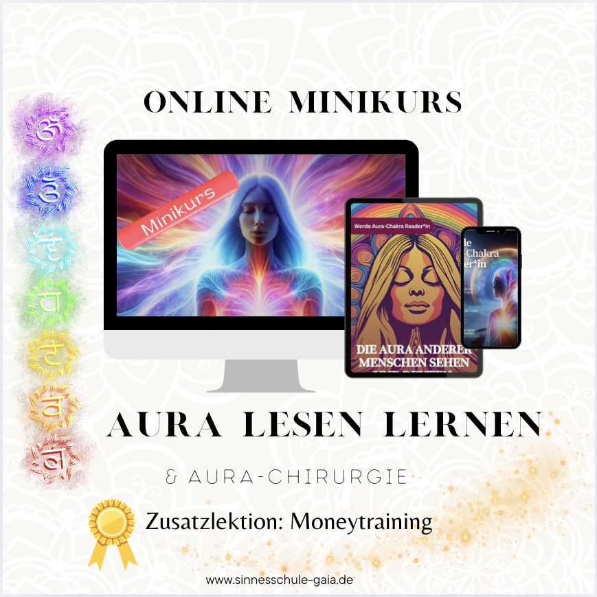 In diesem Minikurs führe ich dich in das Aura lesen lernen ein. Du erhältst wertvolle Hintergründe und sehr viel Praxis-Übungen rund um das Thema Aura lesen lernen. Profitiere von meinen 18 Jahren Erfahrungen als Aura-Chakra-Readerin und Ausbilderin. Ich habe tausende Aura Readings geben und ebenfalls so viele Menschen schon durch den Ausbildungsprozess begleitet. Es bereitet mir einfach sehr viel Freude dieses Wissen weiterzugeben und zu sehen, wie die Menschen durch die Ausbildung und Schulungen ihre Seelenaufgabe finden und ihr Potential ausleben können.Inhalte sind