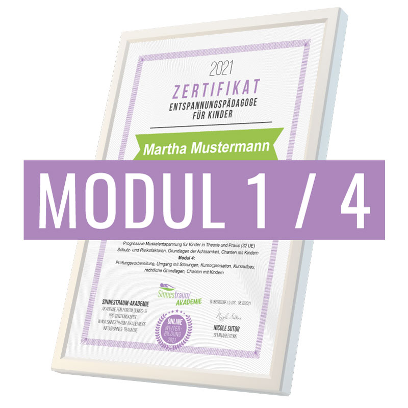 In Modul 1-3 verfasst du mit unseren Tipps deine eigene Fantasiereise und liest uns diesen Text in deiner Lehrprobe nach Modul 4 live online vor. Hast du deine Lehrprobe erfolgreich bestanden, erhältst du von uns deine Lizenz als „Zertifizierte/r Entspannungspädagoge/in für Kinder (Sinnestraum®)“.