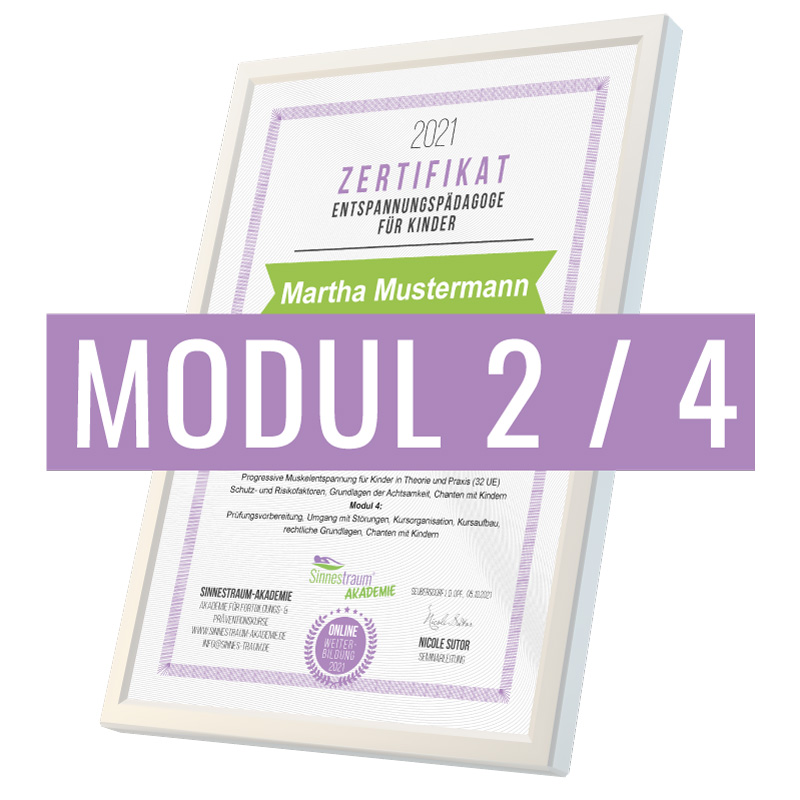 In Modul 1-3 verfasst du mit unseren Tipps deine eigene Fantasiereise und liest uns diesen Text in deiner Lehrprobe nach Modul 4 live online vor. Hast du deine Lehrprobe erfolgreich bestanden, erhältst du von uns deine Lizenz als Entspannungspädagoge für Kinder